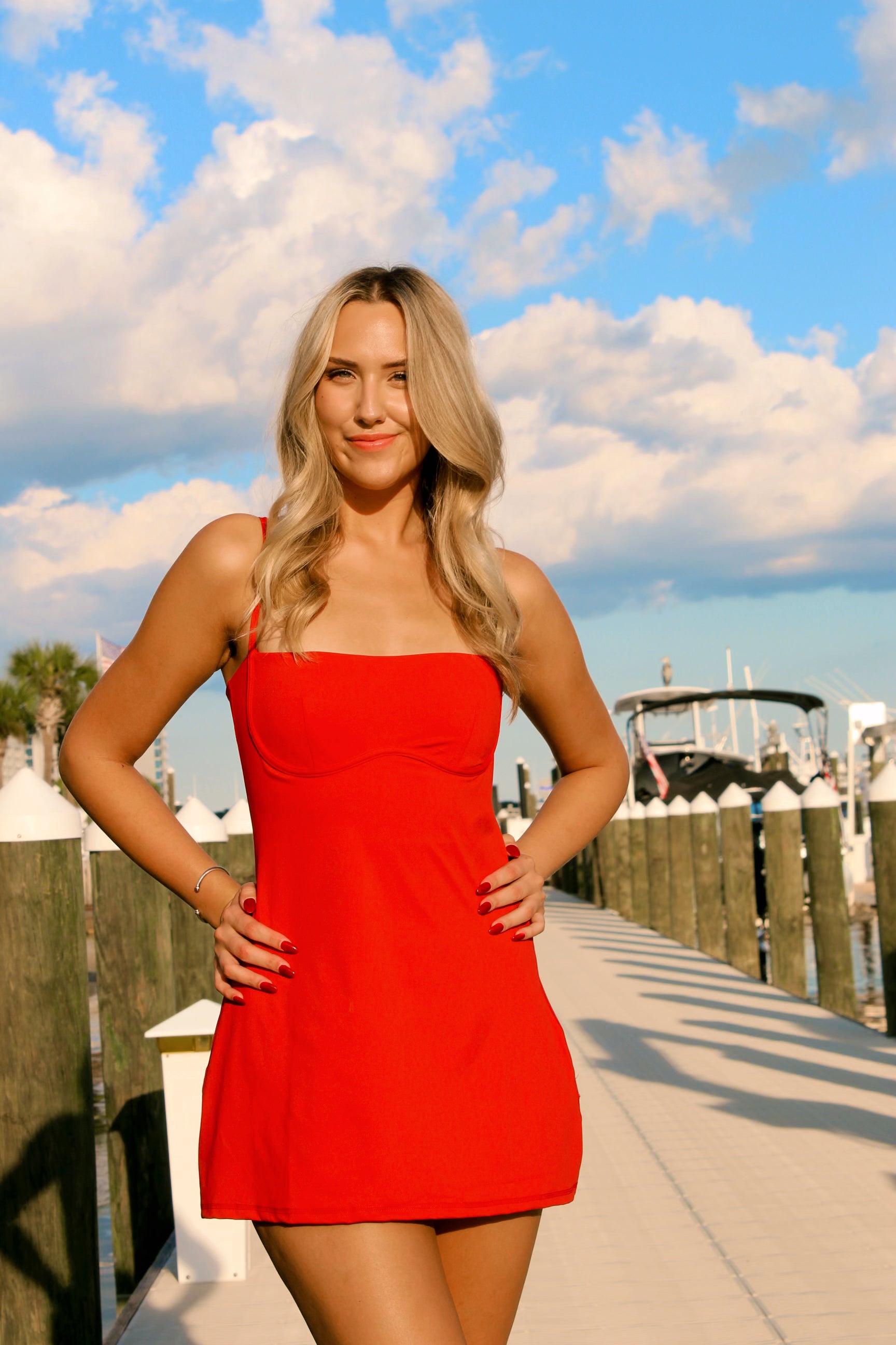Stay comfortable and stylish with our Candy Apple Romper Dress! This athletic wear dress features a built-in shorts with pockets, adjustable straps, and a soft, luxurious feel. Perfect for any on-the-go occasion, you'll love the convenience and comfort this dress provides.