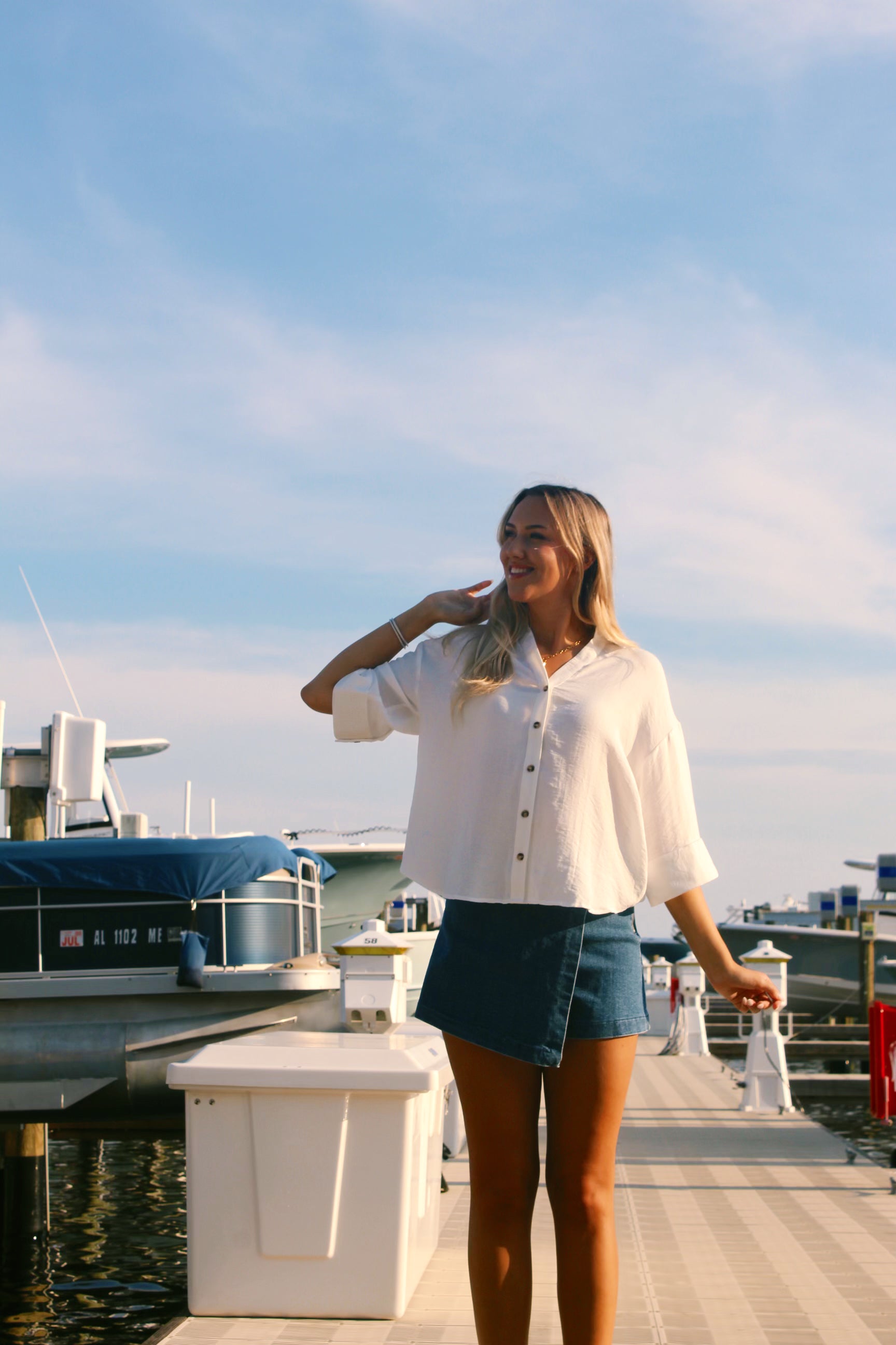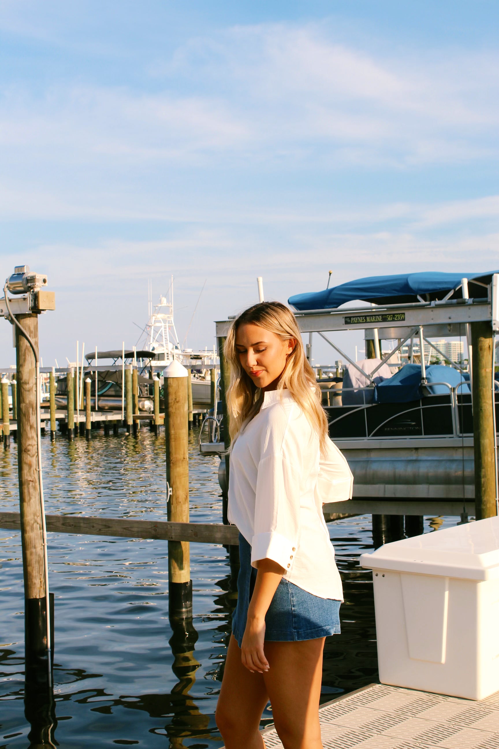 Expertly crafted and versatile, the Starlight top features functional front buttons and a loose fit. With its effortless style, it can be easily paired with any bottom for a seamless look. Perfect for any occasion.